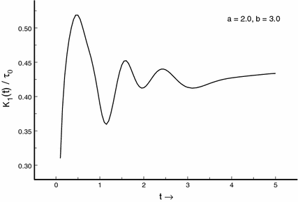 Stress intensity factor (\(K_{1}(t)/\tau _{0}\)) against time t (\(a=2.0,~b=3.0\))