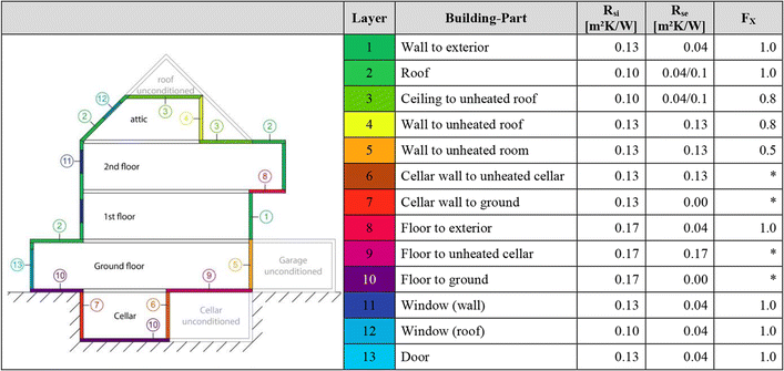 | Internal loads q i | SFH: 45 Wh/(m2 d); MFH: 90 Wh/(m2 d) |