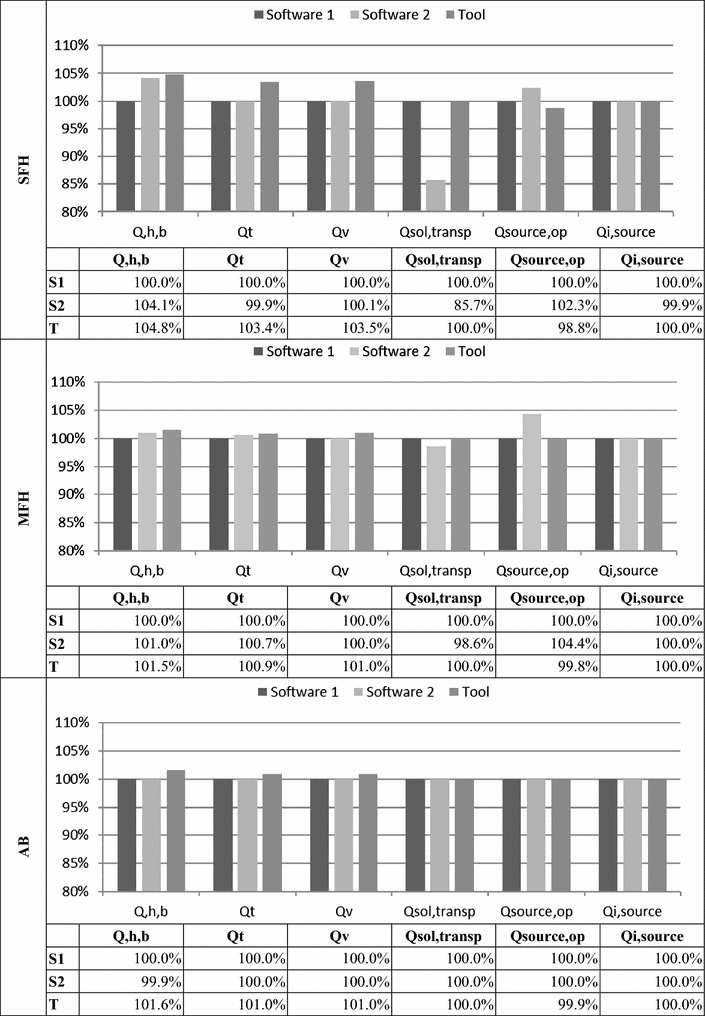 A significant deviation between the tool and S1 can be observed in QT and QV. The deviation is highest for the SFH. As a result, the deviation in Qh,b with 4.8% is also greatest for the SFH.