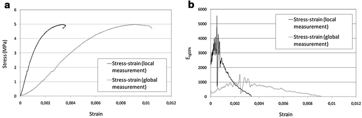 Comparison of the stress–strain and modulus-strain curves for a fresh sample [25]