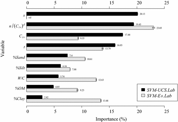 One reference approach that already proved to be of great efficiency [5] in uniaxial compressive strength (UCS) and elastic Young modulus (E 0 ) prediction of soil–cement mixtures is the analytical expression proposed in the Eurocode 2 (EC2) [11] for both strength and stiffness prediction of concrete. According to this approach, mechanical properties of soil–cement mixtures can be estimated over time based on its characteristics at 28 days time of cure. However, this delay in testing of soil–cement seriously limits the design study as well as the control during production and quality assurance at early ages. Thus, to overcome this drawback of EC2 approach, a modified version was proposed, using reference data tested at early ages instead of the conventional 28 days time of cure [4]. The achieved results allow us to balance the model prediction accuracy and time consumption in the final project and construction work costs, by comparing model performance using reference data tested at 3, 7, 14, and 28 days time of cure.