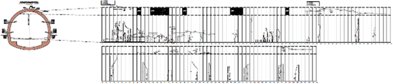 CAD representation of cracks measured during the “manned” inspection of Metsovo tunnel by Egnatia Road Engineers
