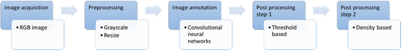 Regarding computational complexity of the algorithm, the proposed computer vision scheme requires 33 s for processing an image frame. This measure has been achieved using a laptop computer of i7 Intel processor of 2.6 GHz (6700 series), memory of 16 GB and GPU nvidia of 950 M series. It is clear that better performance can be achieved in case that a dedicated embedded interface is exploited to perform the computer vision task. For example, we can use an FPGA approach for accelerating the computational complexity of the computer vision module.