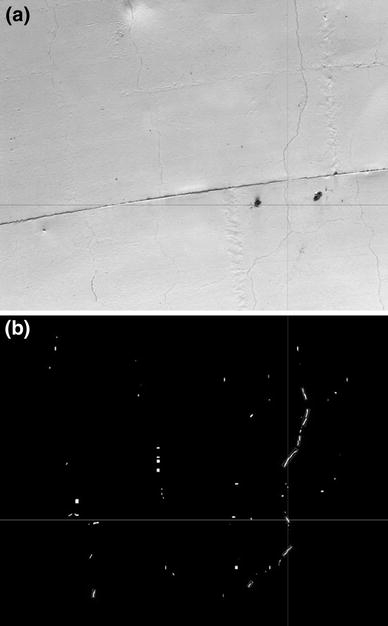 Another important limitation is the time needed to process the captured images to identify or a crack existence. Due to the complexity of the problem, application of a single classifier is not adequate to effectively discriminate cracks from non-cracks. For this reason, post processing algorithms are applied employing connectivity analysis across visually detected components that can be potentially considered as cracks. The overall time achieved in our case is 33 s per frame using a powerful computer system (see Sect. 7.2.2). This time could be significantly reduced if a dedicated hardware is used like FPGA’s components. This way, the overall inspection time would greatly decrease making the overall platform more exploitable.