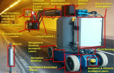Our platform paves the way towards an automatic, reliable and speedy inspection and assessment of the road tunnels from concrete constructions. The system addresses the aforementioned major problems in today’s tunnel inspection; reliability, subjectivity and speed. The key modules of our platform are described in Sect. 2. In brief, the ROBO-SPECT system consists of a series of innovative modules properly integrated together to derive the tunnel inspection.