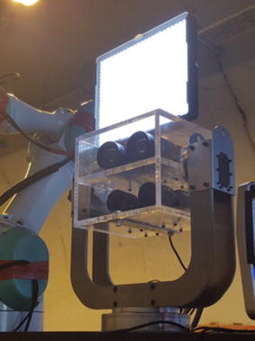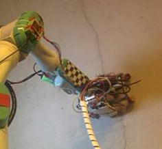 The robotic arm positioning the ultra-sonic sensor on a crack