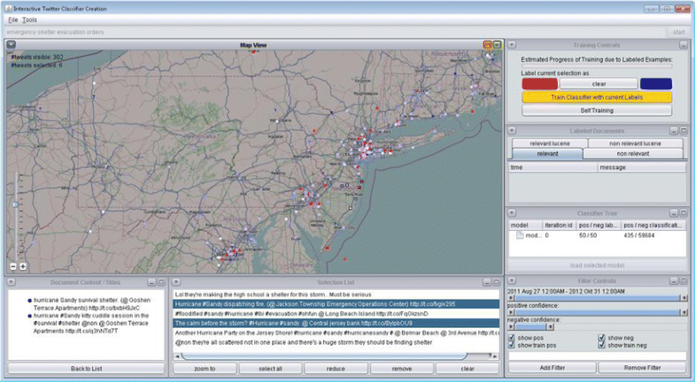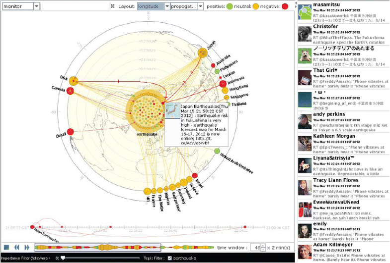 On a more general level, geosocial science will perform research to understand the effect of geo-social relationships on society, for example, the shift of traditional decision-making approaches with the emergence of social media (Luo and MacEachren 2014). An additional use of social media can be achieved with developing new geo-social visual analytic methods to incorporate data exploration, decision-making, and predictive analysis as a whole. A significant challenge for predictive analysis is that geo-social systems are highly sensitive to social adaptive behaviours in crises such as epidemics or natural disasters. Nevertheless, harvesting ambient geographic information from Twitter will enhance our situational awareness capabilities. Although past research and analysis of microblogging content and Tweets has largely addressed event detection, future work will also investigate the evolution and change of events and consider the effect on people and their reactions.