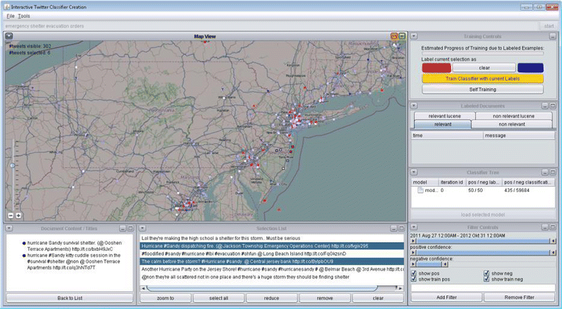 An example of user involvement in analytical methods is represented by Scatterblog2 (Bosch et al. 2013) that allows the interactive creation of classifiers and modification of the number of iterations or topics of the LDA model