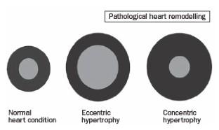 Cardiac remodelling is commonly defined as a physiological or pathological state that may occur after conditions such as myocardial infarction, pressure overload, idiopathic dilated cardiomyopathy or volume overload. When training excessively, the heart develops several myocardial adaptations causing a physiological state of cardiac remodelling. These morphological changes depend on the kind of training and are clinically characterised by modifications in cardiac size and shape due to increased load. Several studies have investigated morphological differences in the athlete’s heart between athletes performing strength training and athletes performing endurance training. Endurance training is associated with an increased cardiac output and volume load on the left and right ventricles, causing the endurance-trained heart to generate a mild to moderate dilatation of the left ventricle combined with a mild to moderate increase in left ventricular wall thickness. Strength training is characterised by an elevation of both systolic and diastolic blood pressure. This pressure overload causes an increase in left ventricular wall thickness. This may or may not be accompanied by a slight raise in the left ventricular volume. However, the development of an endurancetrained heart and a strength-trained heart should not be considered an absolute concept. Both forms of training cause specific morphological changes in the heart, dependent on the type of sport. (Neth Heart J 2008;16:129-33.)