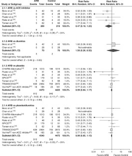 Heran BS, Wong MM, Heran IK, et al. Blood pressure lowering efficacy of angiotensin receptor blockers for primary hypertension. Cochrane Database Syst Rev 2008; CD003822
