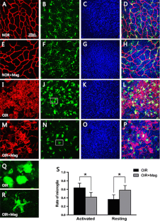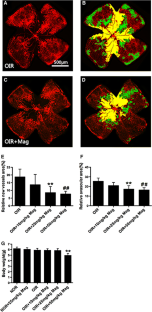 In the present study, we investigated the effects of Magnolol on the retinal neovascularization (RNV) and local glial cells in an oxygen-induced retinopathy (OIR) model and explored their molecular mechanisms.