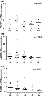 Thirty-seven CHB patients (19 with active disease, 14 completely remitted on long-term antiviral treatment and 4 with relapse after treatment withdrawal), 18 patients with chronic HCV hepatitis, 12 with non-alcoholic fatty liver disease (NAFLD), and 3 controls were enrolled in the study. Liver mRNA levels of CTGF, all TGF-β/activin isoforms, their receptors and intracellular mediators (SMADs) were evaluated using qRT-PCR and were correlated with the grade of liver inflammation and fibrosis staging. The expression and localization of pSMAD2 and pSMAD3 were assessed by immunohistochemistry.
