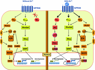 Popovics, P., Stewart, A.J. GPR39: a Zn2+-activated G protein-coupled receptor that regulates pancreatic, gastrointestinal and neuronal functions. Cell. Mol. Life Sci. 68, 85–95 (2011). https://doi.org/10.1007/s00018-010-0517-1