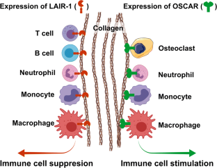 Rygiel TP, Stolte EH, de Ruiter T, van de Weijer ML, Meyaard L (2011) Tumor-expressed collagens can modulate immune cell function through the inhibitory collagen receptor LAIR-1. Mol Immunol 49(1–2):402–406. https://doi.org/10.1016/j.molimm.2011.09.006