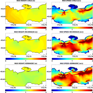 The Natural Hazards Research Platform of New Zealand’s Ministry of Business, Innovation, and Employment provided funding for this study. Aggeliki Barberopoulou assisted in the development of bathymetric grids for Port Taranaki and Marsden Point. Liam Wotherspoon provided the data used in Fig. 2.