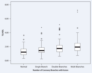 Entsprechend den Koronarangiographiebefunden wurden die 317 in die Studie aufgenommenen Patienten entweder in die KHK-Gruppe (n=233) oder die Kontrollgruppe (n=84) eingeteilt. Zu Studienbeginn wurde die TG-HDL-C-Ratio berechnet. Die KHK-Gruppe wurde dann unterteilt in Ein-Gefäß-Stenose (n=79), Zwei-Gefäß-Stenose (n=73) und Mehr-Gefäß-Stenose (n=81). Zur Auswertung der Beziehung zwischen der TG-HDL-C-Ratio und dem Schweregrad der KHK wurde der Gensini-Score für jede Gruppe berechnet.