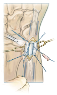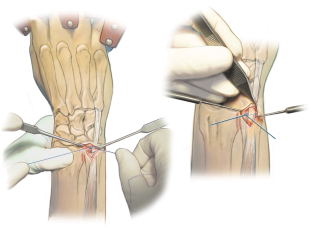 de Araujo W, Poehling GG, Kuzma GR (1996) New Tuohy needle technique for triangular fibrocartilage complex repair: Preliminary studies. Arthroscopy 12:699–703
