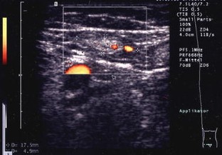 In 55 patients, 40 lymph nodes were correctly categorized as benign and 15 lymph nodes correctly as malignant. The most reliable criteria were shape and vascularization pattern. Intact hilar vessels and branching indicated benign enlargement, destruction of the hilum with vessels running peripherally along the capsule indicated metastatic destruction. Two benign lymph nodes were considered malignant (false positive).