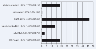 In the overall rating the OSCE was rated as having a clinical relevance. The preferred preparation strategies were the clinical traineeship and standard medical textbooks. Altogether, the OSCE was chosen as the preferred future examination method, followed by multiple choice testing and clinical practical examination.