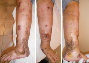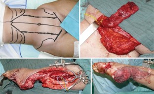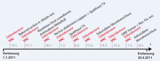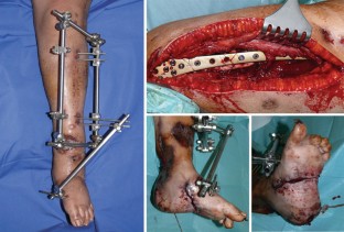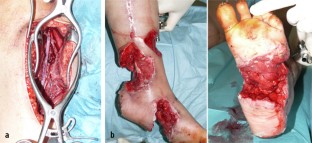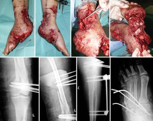 Fallbericht einer 23-jährigen Patientin, die im Rahmen einer Bombenexplosion ausgedehnte Weichteilverletzungen mit subtotaler Amputation des Fußes, offener Femur- und Tibiafraktur, sowie Gefäßverletzung der Aa. tibialis posterior und anterior erlitt. Bei Zuverlegung bestanden schwere Infektionen aller primär verschlossener Wunden. Die Frakturen waren mittels Fixateur externe und Kirschner-Drähten versorgt. Nach ausgiebigen Débridements und Beginn der „Vacuum-assisted-closure-“ (VAC-)Therapie wurde 3 Tage nach Übernahme eine Gefäßrekonstruktion und nach 19 Tagen die plastische Deckung mittels Rectus-abdominis-Lappen durchgeführt. Nach Versorgung der Weichteilverletzungen erfolgte ein Verfahrenswechsel auf eine Plattenosteosynthese für die distale Femurfraktur. Die VAC-Therapie ist eine wichtige Komponente der Therapie von komplexen Weichteilverletzungen und offenen Frakturen. Allerdings muss sie Teil eines früh festgelegten interdisziplinären Behandlungskonzepts sein. Dabei sollte klar festgelegt werden, wann welche Maßnahme durchgeführt wird, was die Voraussetzungen für die einzelnen Maßnahmen sind und welches Ziel jede einzelne Maßnahme hat.
