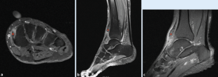 Mengiardi B, Pfirrmann CW, Schöttle PB et al (2006) Magic angle effect in MR imaging of ankle tendons: Influence of foot positioning on prevalence and site in asymptomatic subjects and cadaveric tendons. Eur Radiol 16(10):2197–2206