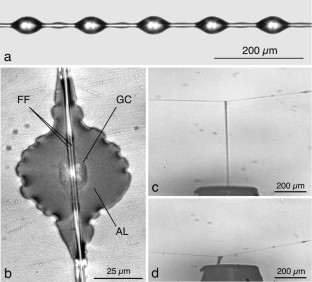 Elettro H, Neukirch S et al (2016) In-drop capillary spooling of spider capture thread inspires hybrid fibers with mixed solid–liquid mechanical properties. PNAS 113(22):6143–6147