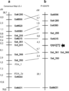 Polzin KM, Lohnes DG, Nickell CD, Shoemaker RC (1994) Integration of Rps2, Rmd and Rj2 into linkage group J of the soybean molecular map. J Heredity 85:300–303