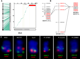 YP conducted majority of the reported research. CW genotyped the RIL population with SLAF-Seq. YHW conducted GBS data analysis and linkage analysis with SNP markers. YH performed FISH analysis. XC, SL, and YL participated in phenotypic data collection in different experiments. YW conceived and supervised the research and wrote the manuscript with YP.