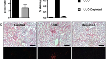 Total RNA was isolated from kidneys using an RNA extraction kit (Qiagen, Hilden, Germany) according to the manufacturer’s instructions. After quantification, RNA quality was assessed using agarose gels. From isolated RNA, cDNA was prepared using reverse transcriptase (Superscript II; Invitrogen, Carlsbad, CA, USA). Real-time-PCR was performed using SYBRGreen PCR master mix and was analysed with a Light Cycler 480 (Roche). All gene expression values were normalised using 18S RNA as a housekeeping gene. All primers (Electronic supplementary material [ESM], Table 1) used for amplification were from Metabion (Martinsried, Germany).