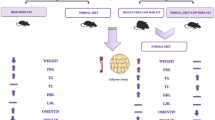 Mice were killed by decapitation at the end of the study and blood was collected and immediately chilled on ice. After 15 min of centrifugation at 3,000 g and 4°C, plasma was stored at −80°C. Plasma analysis was also done in samples from tail bleeding after CVS and consumption of the diet for 1 month (Fig. 1). NEFA levels were measured in duplicate using a commercially available enzymatic assay kit (Autokit NEFA C, Wako, Neuss, Germany), triacylglycerol levels were determined in duplicate using Infinity Triglyceride reagent b (Thermo Electron, Pittsburgh, PA, USA) and plasma glucose was measured in duplicate using a commercial kit based on the glucose oxidase method (Biomerieux, Marcy l’Etoile, France). Plasma adiponectin, resistin, insulin and leptin levels were determined with a commercially available Multiplex Luminex xMAP assay (Millipore, Billerica, MA, USA) and mouse Lincoplex kits (Linco Research, St Charles, MO, USA). Intra- and inter-assay coefficients of variation were: <5% and <12%, respectively, for adiponectin; <4.5% and <10.3%, respectively, for resistin; 2.7–5.8% and 3.8–10.8%, respectively, for insulin; and <7% and <23%, respectively, for leptin. The panel of T3, T4 and thyroid stimulating hormone (TSH) were measured using 3 Plex rat thyroid assays (Linco Research, St Charles, MO, USA) and the intra- and inter-assay coefficients of variation were <10% and <5%, respectively. Plasma corticosterone levels were measured in duplicate using a 125I radioimmunoassay kit from MP Biomedicals (Orangeburg, NY, USA). Intra- and inter-assay coefficients of variation for corticosterone were <10%. Plasma glycerol levels were measured in duplicate using a commercially available enzymatic assay kit from Sigma. All assays were performed according to the manufacturers’ instructions.