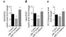 Next, we analysed mirR-153 expression in mouse MIN6B cells and isolated mouse pancreatic islets after glucose stimulation (Fig. 2d,e). We detected a significant increase in the expression of miR-153, Ia-2 and Ia-2β after glucose stimulation of MIN6B cells at 25 mmol/l glucose compared with 5 mmol/l glucose (Fig. 2d). Finally, increasing glucose levels from 3.3 to 16.7 mmol/l dramatically increased miR-153, Ia-2 and Ia-2β expression in cultured isolated mouse islets (Fig. 2e). These studies show that miR-153, Ia-2 and Ia-2β expression is increased after glucose stimulation in MIN6B cells and isolated mouse pancreatic islets.