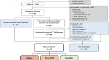 The original OGTT dataset comprised 10,642 women with GDM risk factors or signs suggestive of GDM. We were able to retrospectively collect data on maternal characteristics and pregnancy outcomes in a representative sample of women (n = 4431) from written medical and obstetric records at midwives’ offices in primary care and at two hospitals; the UMCG and the Martini Hospital Groningen (Fig. 1). All data were incorporated in an anonymised database. An overview of collected maternal and neonatal outcomes is given in ESM Table 1.