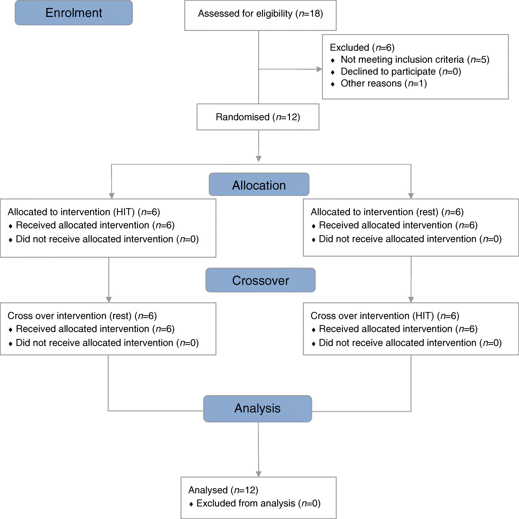 The randomisation relates to the order that the HIT or rest intervention was carried out by the participant. Randomisation was carried out in a good clinical practice (GCP)-compliant manner using http://www.randomization.com/.
