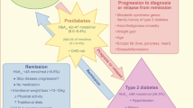Therapies targeting metabolic control in T2D have improved greatly in recent years. Short-term pharmacological therapy at the time of first presentation of T2D in adults can sometimes restore nearly normal glycaemic control, allowing therapy to be withdrawn [7,8,9]. Reversal of ‘glucose toxicity’ accompanying restoration of glycaemic control is best documented with early intensive insulin therapy but can occur with other interventions. New classes of drugs, the glucagon-like peptide 1 (GLP-1) receptor agonists and sodium–glucose cotransporter inhibitors, can sometimes attain excellent glycaemic control with little tendency to cause hypoglycaemia. Significant behavioural changes—mainly related to nutrition and weight management—can lead to a return from overt hyperglycaemia to nearly normal glucose levels for extended periods of time [10, 11]. More dramatically, surgical or other enteral interventions can induce both significant weight loss and further improvement of metabolic control by other mechanisms for prolonged periods [12,13,14]—5 years or more in some cases. A return to nearly normal glycaemic regulation after all these forms of intervention is most likely early in the course of T2D and can involve partial recovery of both insulin secretion and insulin action [15].