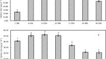 Uptake rates for dissolved nitrogen (DN) by a marine alga (Oocystis borgei) were examined in a 15N tracer experiment. Maximal uptake rates for all forms of DN were observed at temperatures between 25 and 30°C and at algal concentrations between 3.22 × 108 and 4.78 × 108 cell L−1. Light intensity required to achieve the maximal uptake rate was 45 μmol m−2 s−1 for dissolved inorganic nitrogen (DIN = NO3 −, NO2 −, NH4 +) and methionine, and 126 μmol m−2 s−1 for urea. Salinity required to achieve the maximal uptake rate was 12.85 ppt for DIN, 19.89 ppt for urea and 26.2 ppt for methionine.