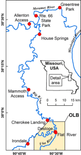 Missouri Department of Natural Resources (2010) Total Maximum Daily Loads (TMDL) fact sheet, Big River, Flat River Creek and Shaw Branch, Jefferson, St. Francois, and Washington Counties, Missouri. Water Protection Program, Jefferson City. http://dnr.mo.gov/env/wpp/tmdl/docs/2074-2080-2168-2170-big-r-tmdl.pdf. Accessed 9 March 2016