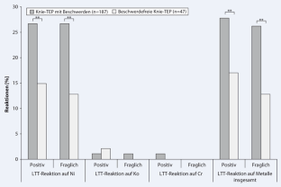 Die Implantatallergiedatenlage ist lückenhaft. Deshalb verglichen wir Allergieanamnese, Epikutantest (ECT) und Lymphozytentransformationstest (LTT) einer Patientenserie der Münchner Implantatallergiesprechstunde mit beschwerdefreien Endoprothesenträgern.
