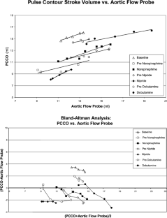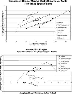 Two technologies to acquire beat-to-beat stroke volume values exist, pulse contour analysis and esophageal Doppler monitoring. Pulse contour analysis assumes fixed aortic impedance. Esophageal Doppler assumes a constant proportional descending aortic flow and diameter. These assumptions may not be correct as arterial tone or myocardial contractility vary. We tested these relationships in the setting of rapidly changing stroke volumes and different cardiovascular states over a period of 10–15 cardiac cycles.