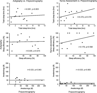 Beecroft J, Ward M, Younes M, Crombach S, Smith O, Lukic D, Lawrence J, Hanly P (2005) Sleep monitoring in the intensive care unit: comparison of nurse assessment, actigraphy and polysomnography. Proc Am Thorac Soc 2:A793