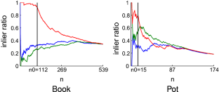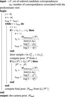 We here have two SFM reconstructions. One is built from the full image sequence and the second is built from a subsequence. Let \({{{\mathscr {R}}}}_1\) and \({{{\mathscr {R}}}}_2\) be the world coordinate frames attached to these SfM reconstructions.