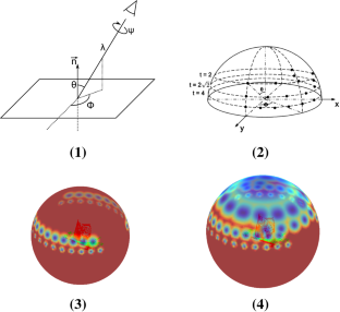 The rigid + scale transformation (s, R, T) between \({{{\mathscr {R}}}}_1\) and \({{{\mathscr {R}}}}_2\) can be easily recovered using Procrustes analysis from the set of corresponding camera centers. Since we consider the same camera, the viewing coordinates are the same in the two coordinates frames. As the link between the viewing and the world coordinate in homogeneous coordinates is given by \(X_{vc}^1= R^{1}X_{wc}^1 + T^1\), we can deduce: