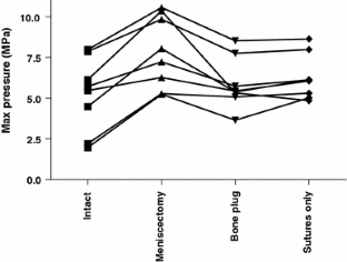Ihn JC, Kim SJ, Park IH (1993) In vitro study of contact area and pressure distribution in the human knee after partial and total meniscectomy. Int Orthop 17:214–218