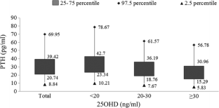 Touvier M, Deschasaux M, Montourcy M et al (2014) Interpretation of plasma PTH concentrations according to 25OHD status, gender, age, weight status, and calcium intake: importance of the reference values. J Clin Endocrinol Metab 99:1196–1203