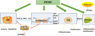 Zhou J, Chen S, Guo H (2013) Pulsed electromagnetic field stimulates osteoprotegerin and reduces RANKL expression in ovariectomized rats. Rheumatol Int 33(5):1135–1141