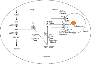 Sharma, K.G., Kaur, R. & Bachhawat, A.K. The glutathione-mediated detoxification pathway in yeast: an analysis using the red pigment that accumulates in certain adenine biosynthetic mutants of yeasts reveals the involvement of novel genes. Arch Microbiol 180, 108–117 (2003). https://doi.org/10.1007/s00203-003-0566-z