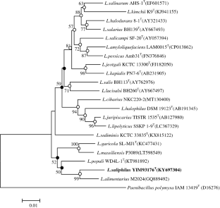Sun P, Gao JL, Mao XJ, Zhao XH, Sun JG, Lu M (2016) Lentibacillus populi sp. nov., a moderately halophilic, endophytic bacterium isolated from a poplar tree, and emended description of the genus Lentibacillus. Int J Syst Evol Microbiol 66:5281–5287