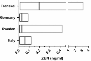 Mirocha CJ, Pathre SV, Robison TS (1981) Comparative metabolism of zearalenone and transmission into bovine milk. Food Cosmet Toxicol 19:25–30