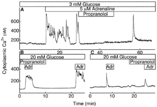 Liu YJ, Vieira E, Gylfe E (2004) A store-operated mechanism determines the activity of the electrically excitable glucagon-secreting pancreatic α-cell. Cell Calcium (in press)