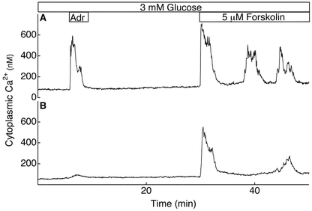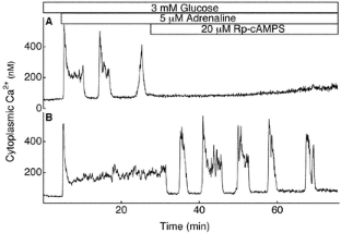 Johansson H, Gylfe E, Hellman B (1989) Cyclic AMP raises cytoplasmic calcium in pancreatic α2-cells by mobilizing calcium incorporated in response to glucose. Cell Calcium 10:205–211