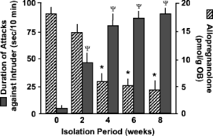 Matsumoto K, Pinna G, Puia G, Guidotti A, Costa E (2005) Social isolation stress-induced aggression in mice: a model to study the pharmacology of neurosteroidogenesis. Stress 8:85–93